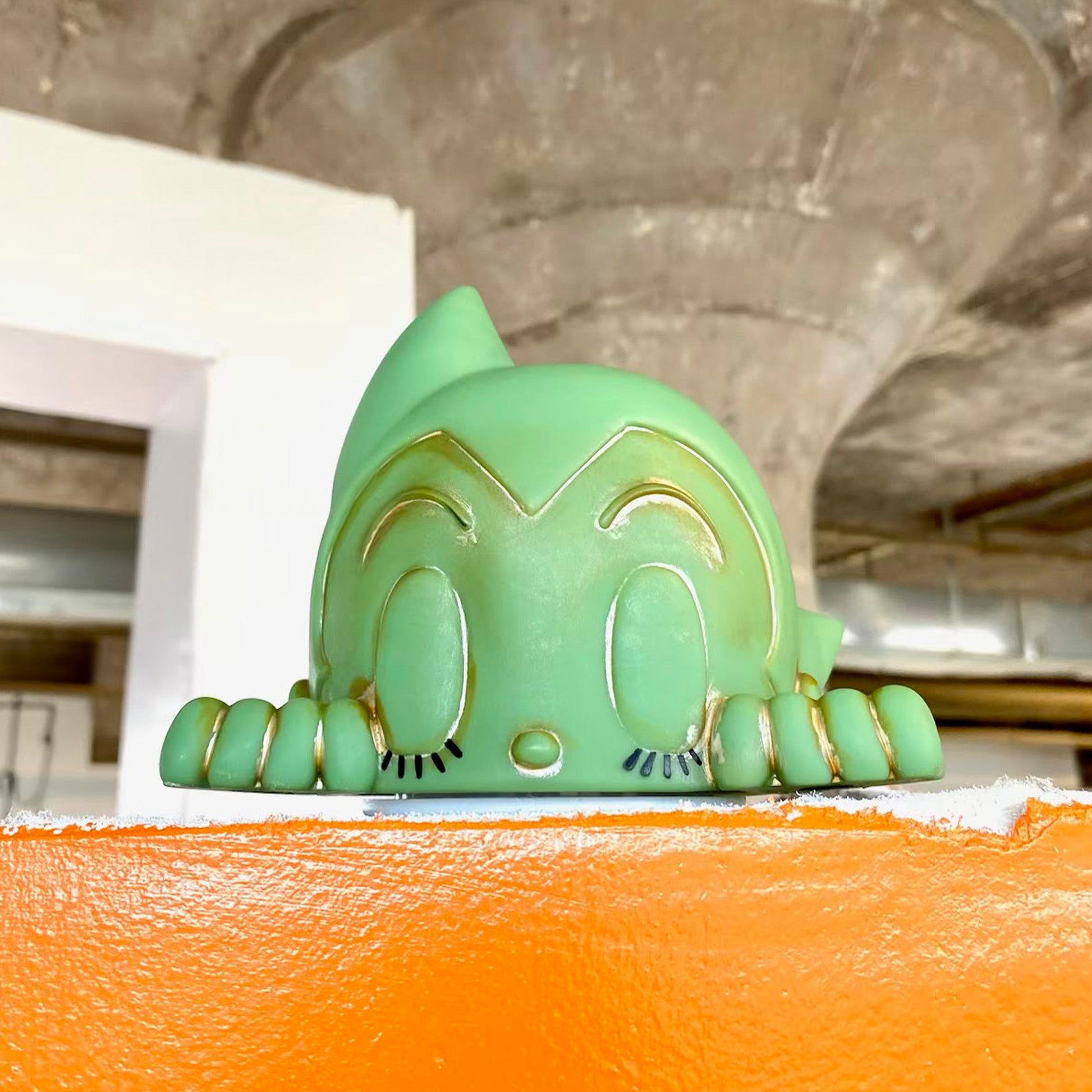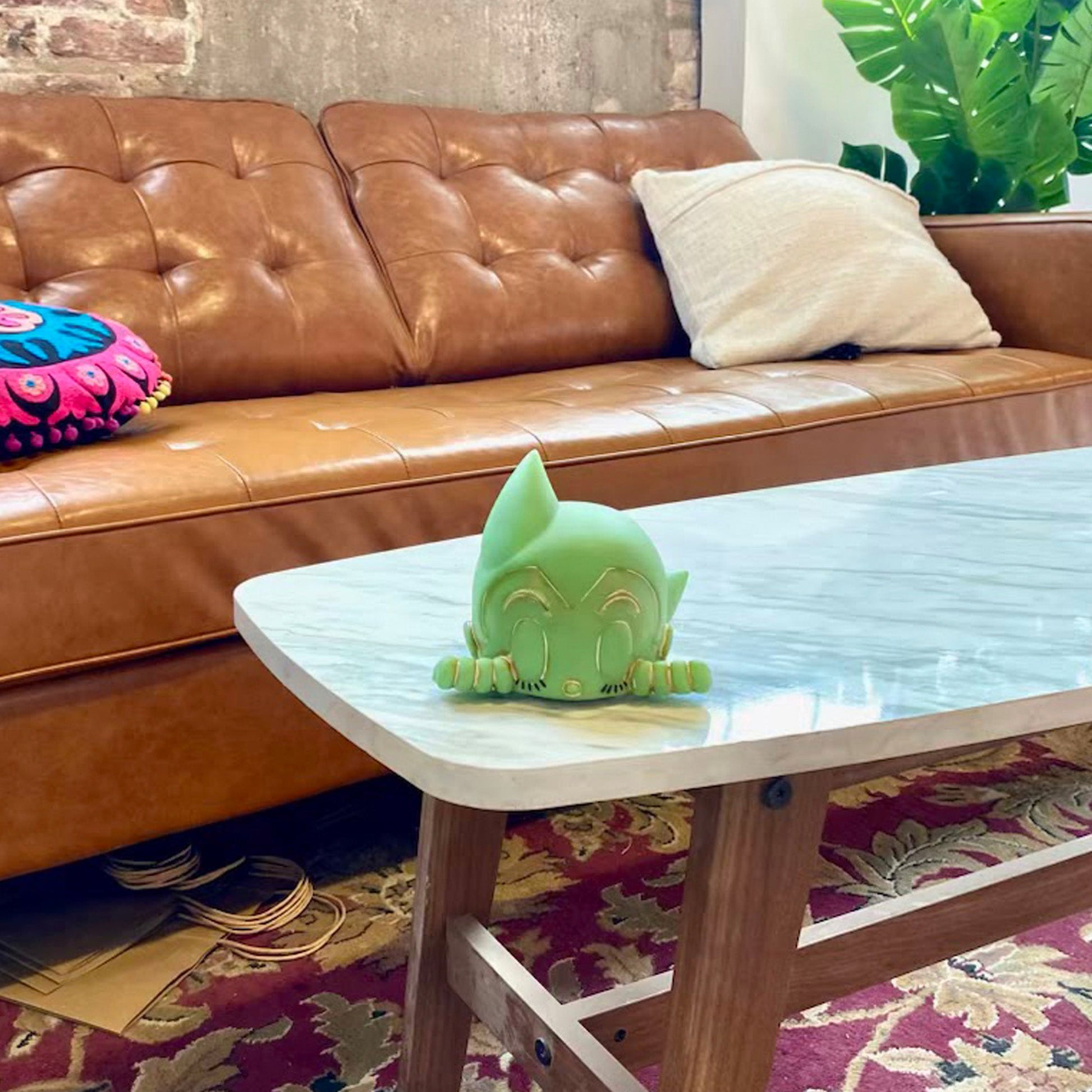 The Astro Boy Peek-A-Boo Touch Lamp! This vinyl sculpture touch lamp measures 4.5” x 4.5” x 6” and operates with touch lighting, requiring two AA batteries.