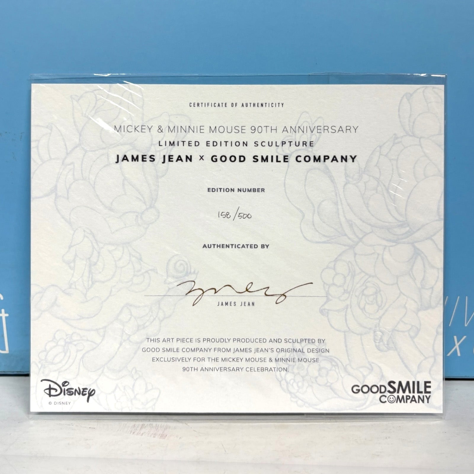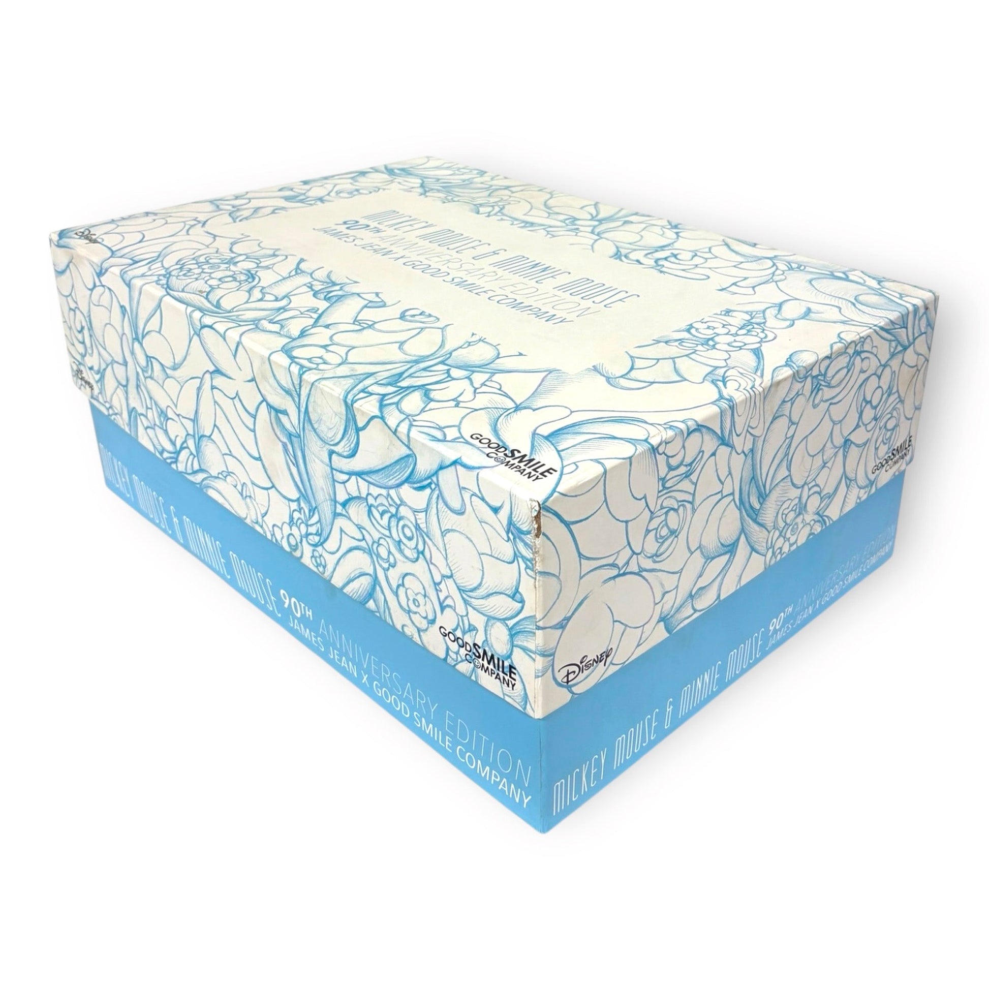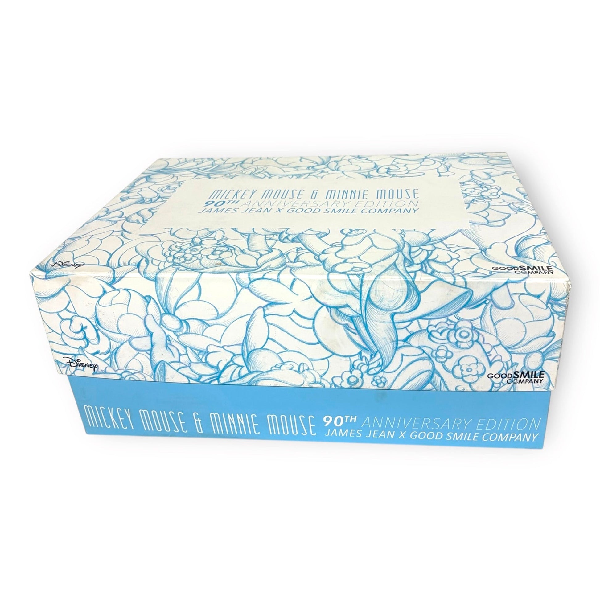 James Jean reimagines Mickey and Minnie in this 90th Anniversary set from Good Smile Company. Each 9.8" resin statue features a porcelain-like finish overseen by the artist and is hand-signed by James Jean. Figures are in perfect condition; box shows minor wear.